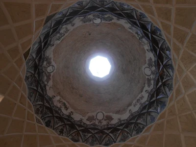 Nous retournons vers le bazar à la recherche de la Vakil Chaykhaneh. C'est un salon de thé historique, construit en sous-sol en 1820. Il est surtout connu pour son architecture élégante sous des voûtes. Il y a aussi de la musique live. C'est un restaurant (le déjeuner de 12h00 à 14h30) dont les spécialités sont le khashke bademjan et le kermani khoresht bozghorme.